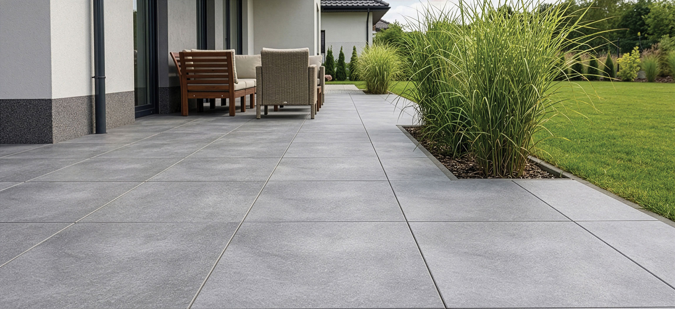 • Centrování spárořezu: U čtvercového formátu 60 × 60 cm si pečlivě rozměřte střed terasy nebo hlavní pohledovou osu (např. od francouzského okna) a pokládku začněte odtud, aby dořezy na okrajích byly symetrické.